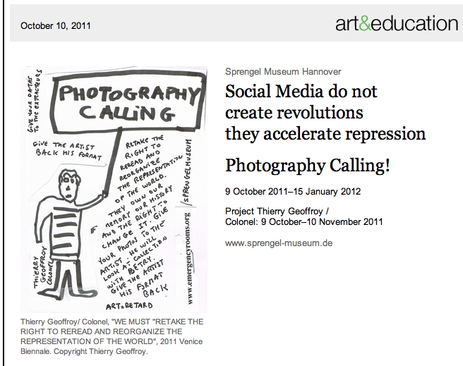 Photography as a central document is the centre of the questioning in Thierry Geoffroy's / Colonel's contribution to the exhibition PHOTOGRAPHY CALLING! at Sprengel Museum Hannover.